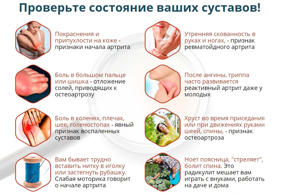Болезни суставов могут возникнуть вследствие повышенной нагрузки на позвоночник, таз, ступни и колени, а также после переломов и ушибов костной ткани. В большинстве случаев механические повреждения, полученные в молодости, дают о себе знать людям пожилого возраста в форме подагры.